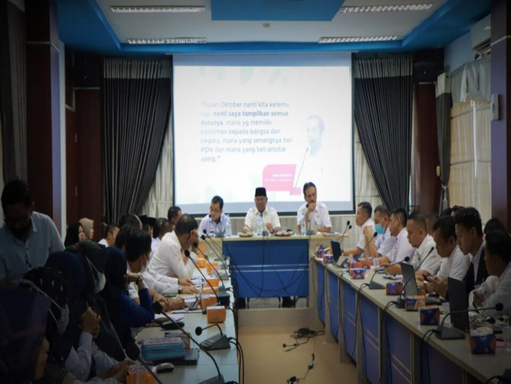 Bangkinang Kota – Dalam rangka menindak lanjuti hasil Rapat Koordinasi Nasional (Rakornas) pengawasan intern tahun 2022 tentang Kawal Produk Dalam Negeri Untuk Bangsa Mandiri dan update progres realisasi Percepatan Peningkatan Penggunaan Produk Dalam Negeri (P3DN), Pemerintah Daerah Kabupaten Kampar segera lakukan Percepatan Pelaksanaan P3DN.