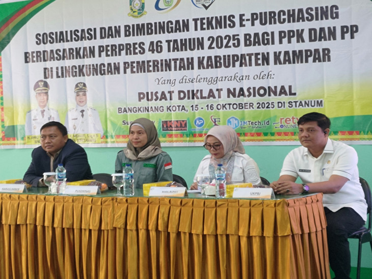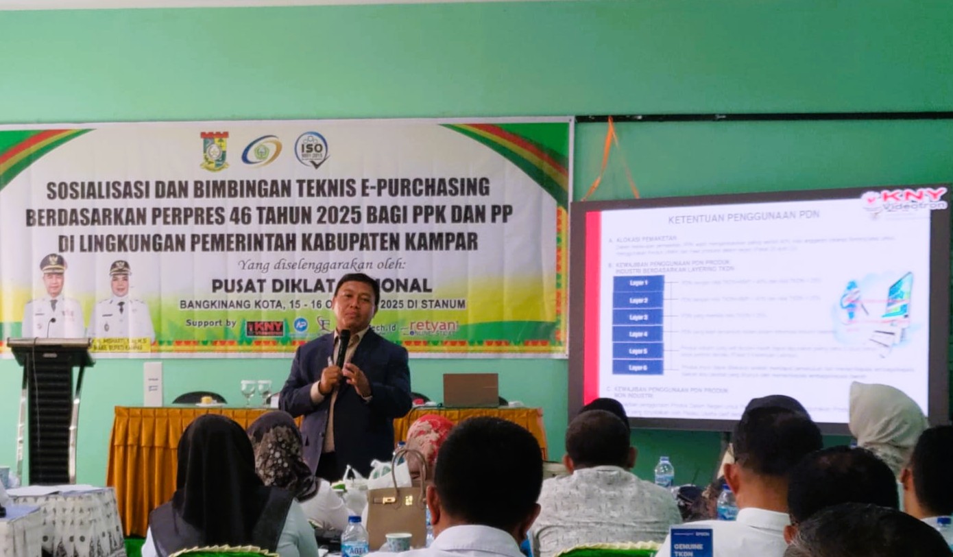 BANGKINANG KOTA – Dalam sebuah langkah proaktif untuk memastikan tata kelola pengadaan barang dan jasa yang bersih dan modern, Pemerintah Kabupaten Kampar telah menyelesaikan Bimbingan Teknis (Bimtek) yang krusial bagi Aparatur Pengadaan. Selama dua hari, 15-16 Oktober 2025, para Kuasa Pengguna Anggaran (KPA), Pejabat Pembuat Komitmen (PPK), dan Pejabat Pengadaan (PP) digembleng untuk menguasai seluk-beluk Peraturan Presiden (Perpres) Nomor 46 Tahun Anggaran 2025.